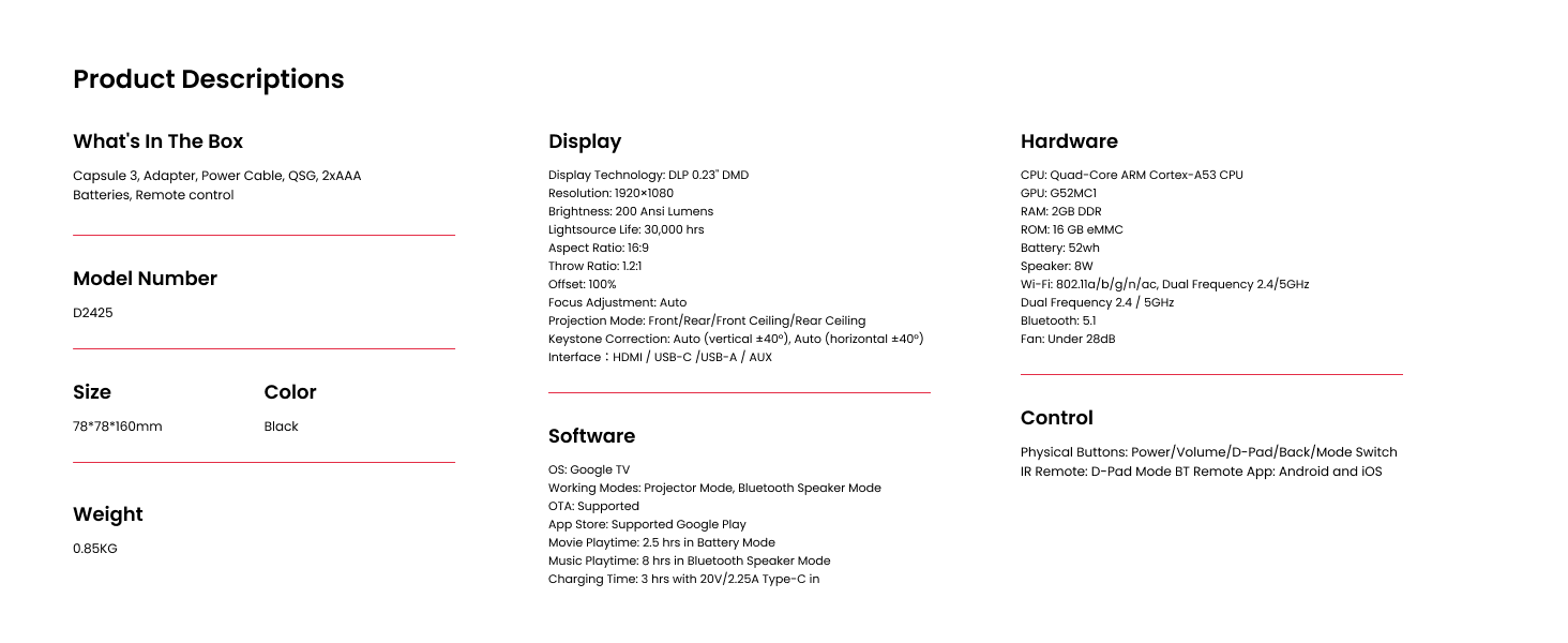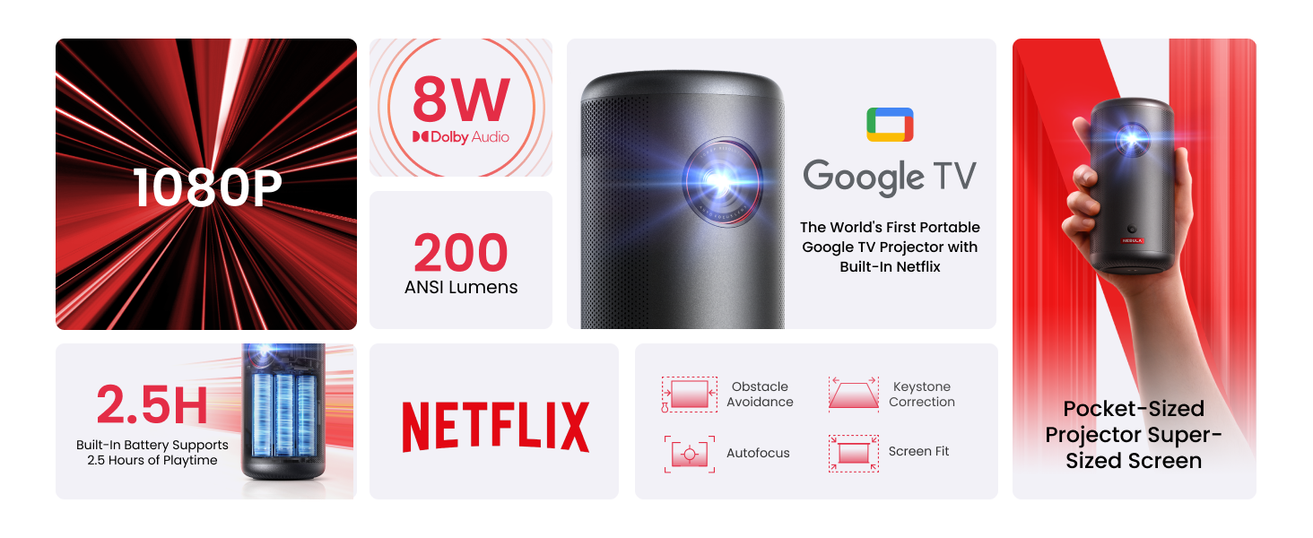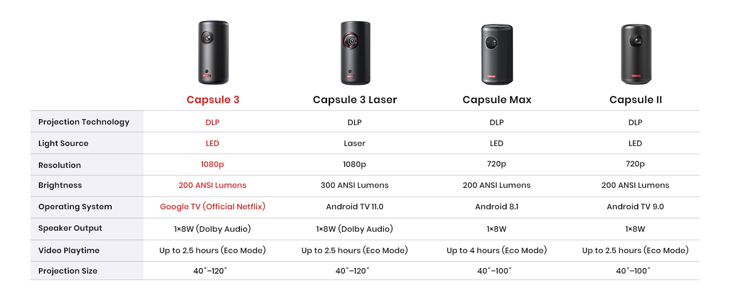 - Super-Sized Screen, Portable Design: Capsule 3 is the world's smallest Google TV projector with built-in Netflix.