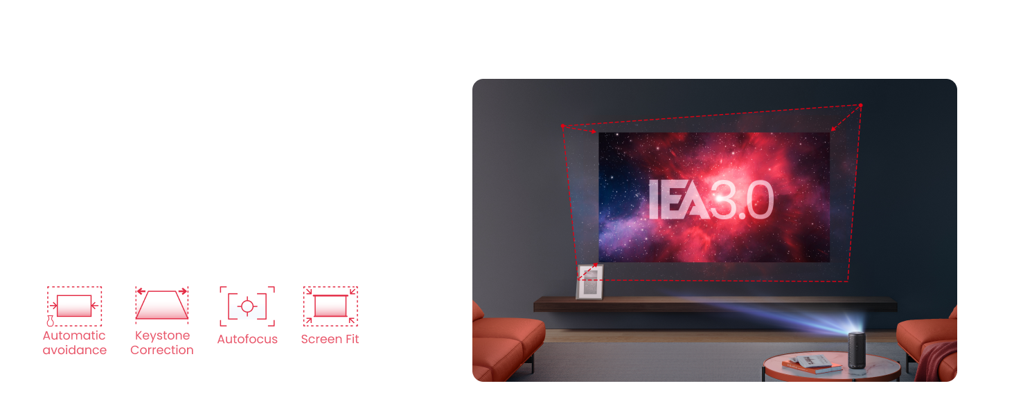 - Set Up in Seconds: Our Intelligent Environment Adaptation Technology performs auto keystone correction, autofocus, keystone correction and obstacle avoidance in just 3 seconds.